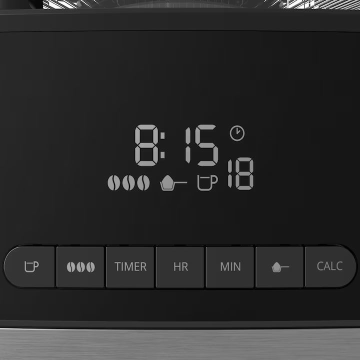 Други:Automatic shutdown after 30 minutes, Easy care, Easy control panel with digital display, Infinite coffee variety, Programmable up to 24 hours, Two brewing modes: coffee beans or ground coffee, Visible water level