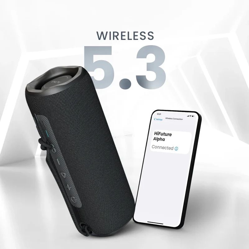 Тонколони HiFuture Alpha Black, Bluetooth 5.3, IPX7 Waterproof, 20W Output, Pair to Play (TWS Mode), Up to 12 Hours Playtime, Built in 2-in-1 Amplifier