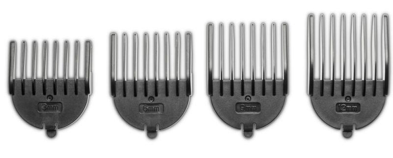 Гребени_TEXT:2 comb attachments for the beard trimmer attachment with 10 cutting lengths: 3 – 7 and 8 – 12 mm