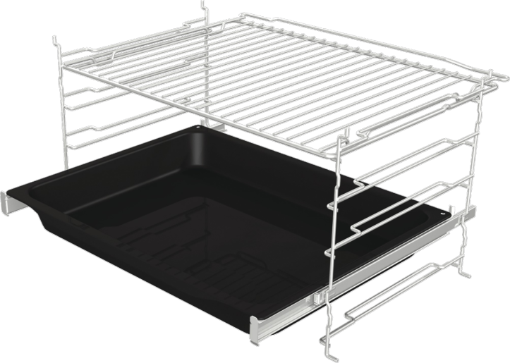 Телескопичните водачи улесняват работата – можете безопасно и удобно да изваждате тавите, дори когато фурната е гореща.