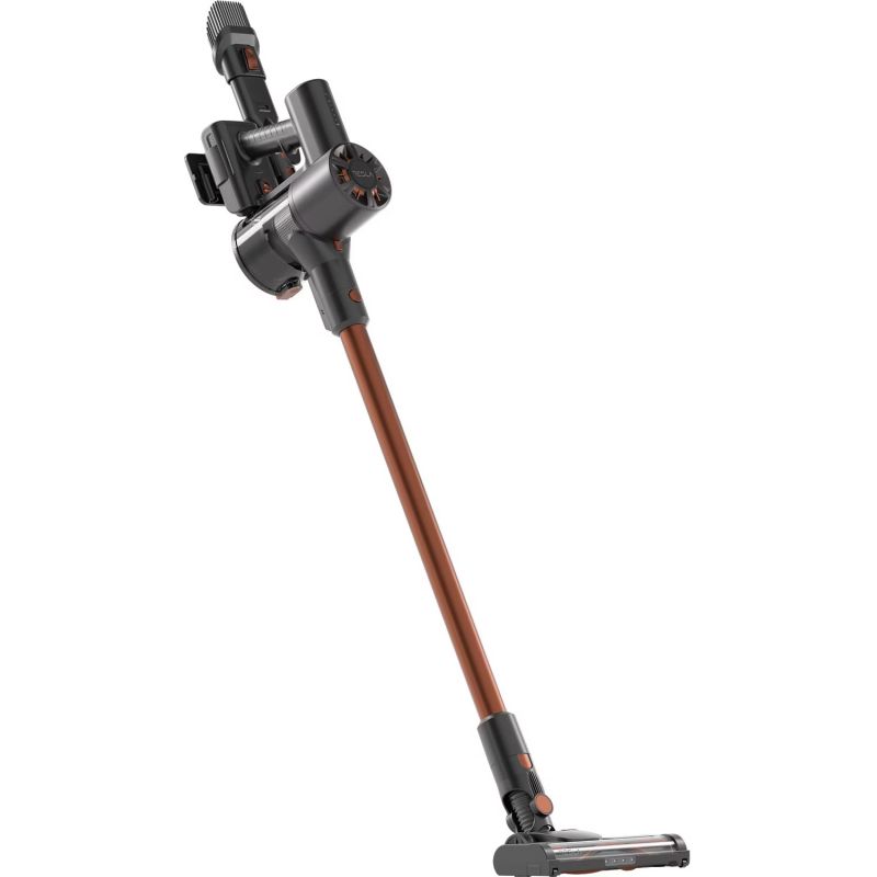 Моделът е оборудван с моторизирана четка с LED осветление, която подобрява видимостта под мебели и в тъмни ъгли, осигурявайки по-прецизно почистване. Телескопичната метална тръба позволява удобно адаптиране според височината на потребителя, а включените накрайници улесняват почистването на тесни пространства и различни повърхности.