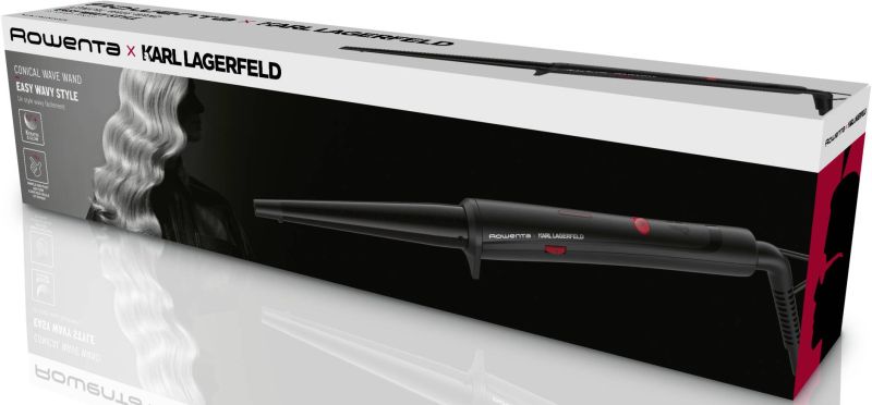 Маша за коса Rowenta x KARL LAGERFELD CF324LF0 – конусовидна конична маша за къдрене, регулируема 120-200 °C, Keratin & Glow покритие